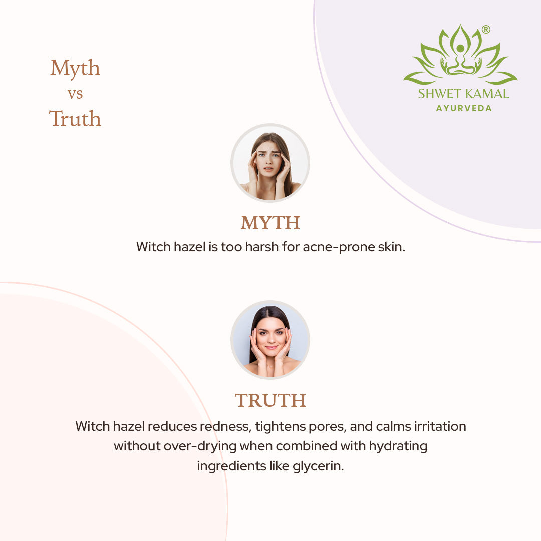 Witch Hazel (derived from bark, twigs, and leaves of the hamamelis virginiana plant): A botanical extract known for astringent, anti-inflammatory, and soothing properties used in acne treatments to tighten pores, reduce oiliness, and calm irritated skin.